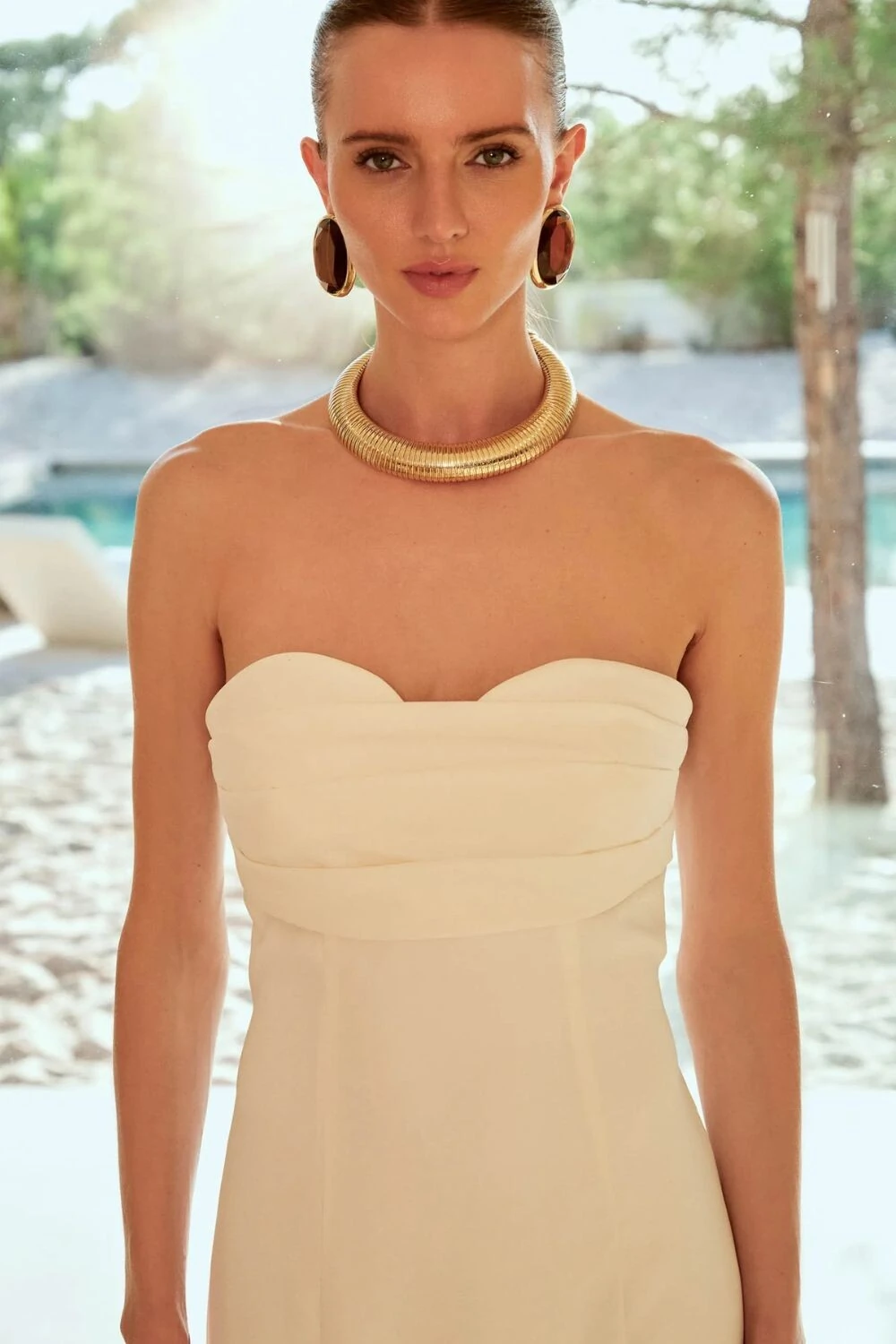 Vestido Midi Sem Alça Bordado Em Camadas De Algodão