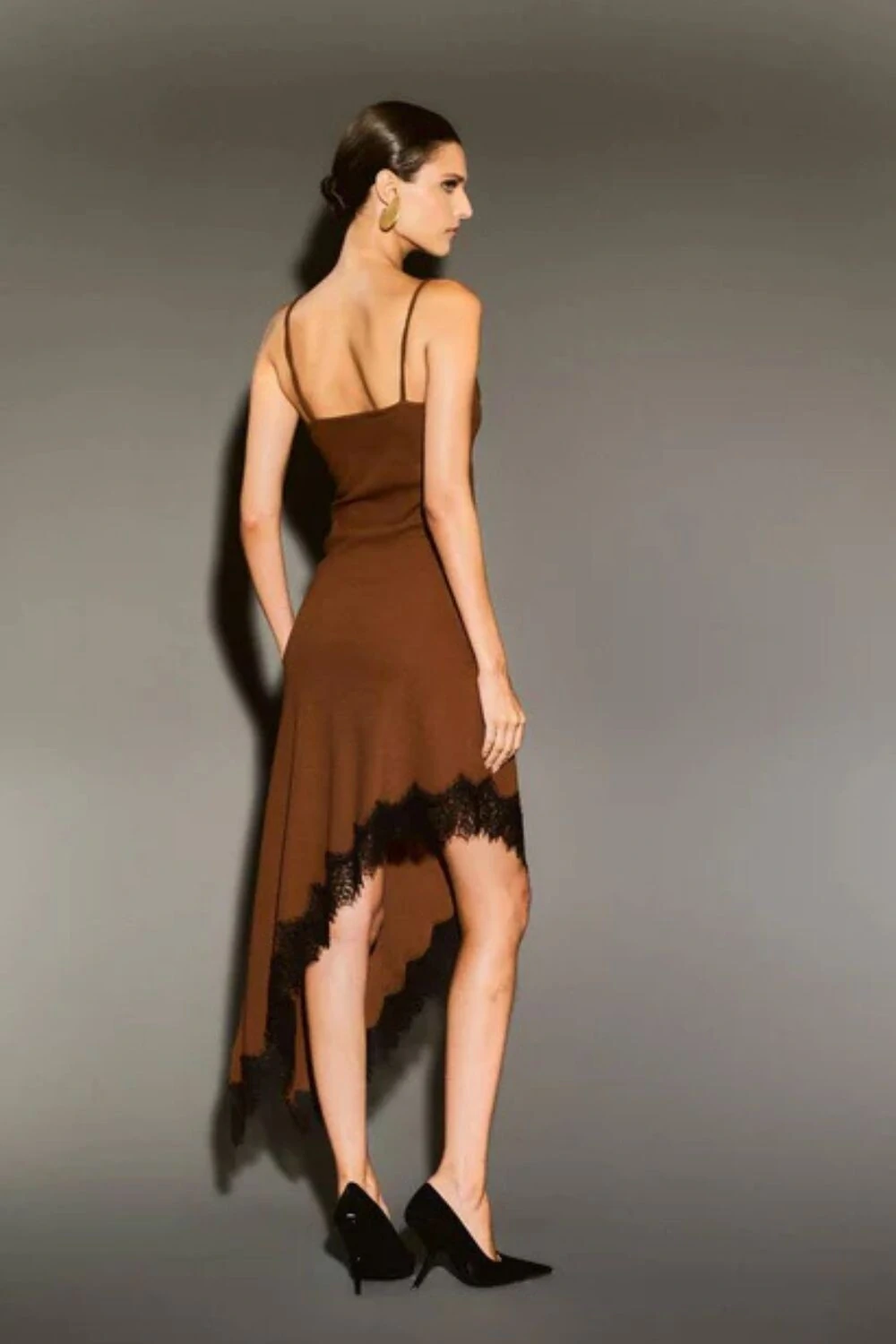 -30%Vestido em Malha de Manga Longa e Saia Baixa Ampla