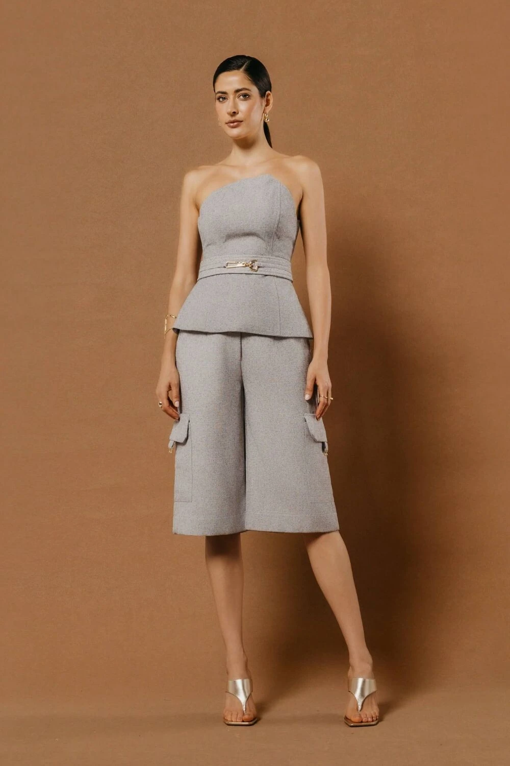 Macacão Alfaiataria com Pala em Tricot na Cintura