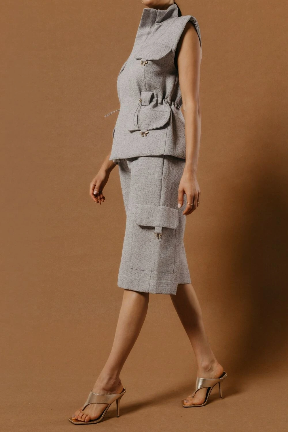 Conjunto Gola Alta Sem Manga e Saia Midi