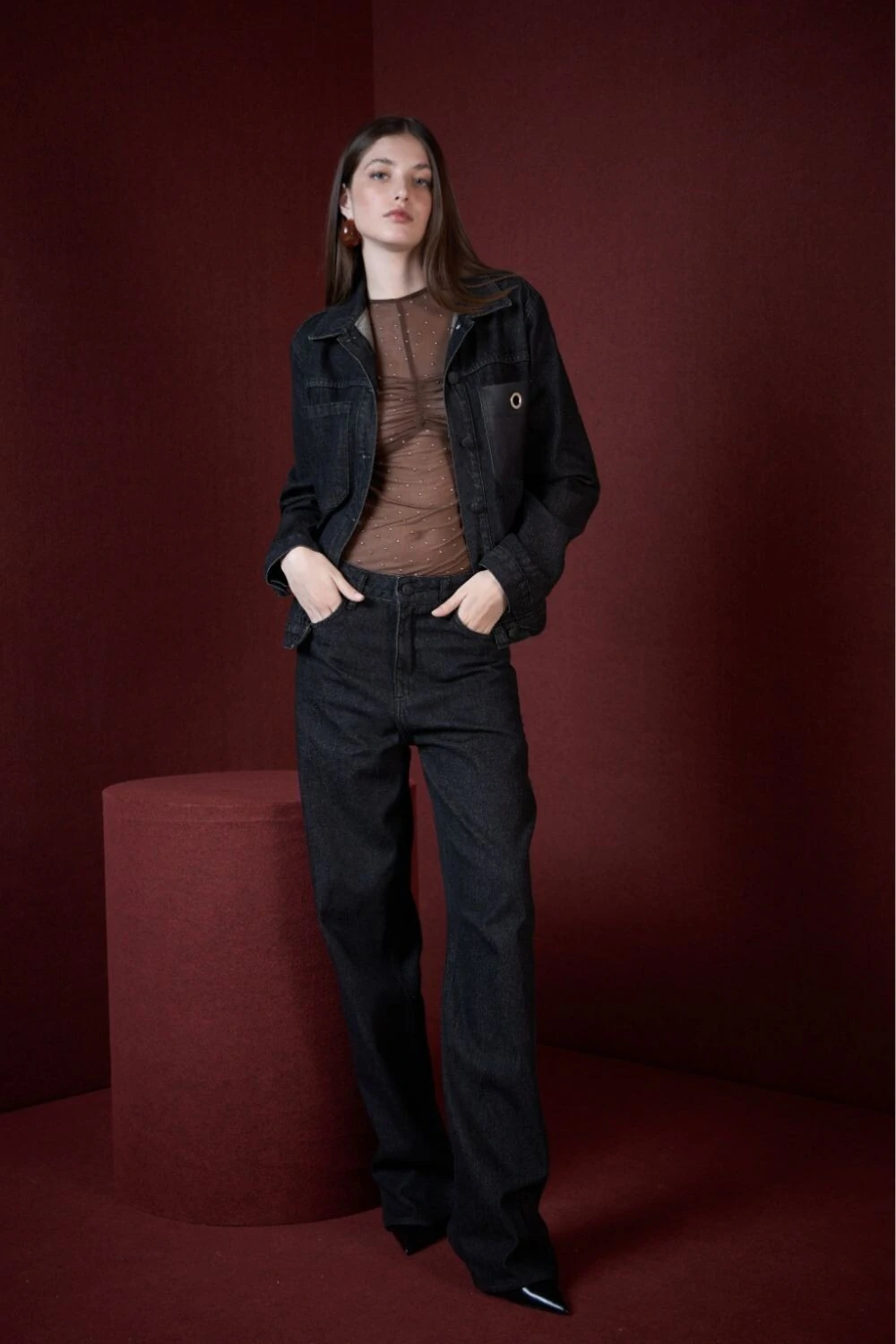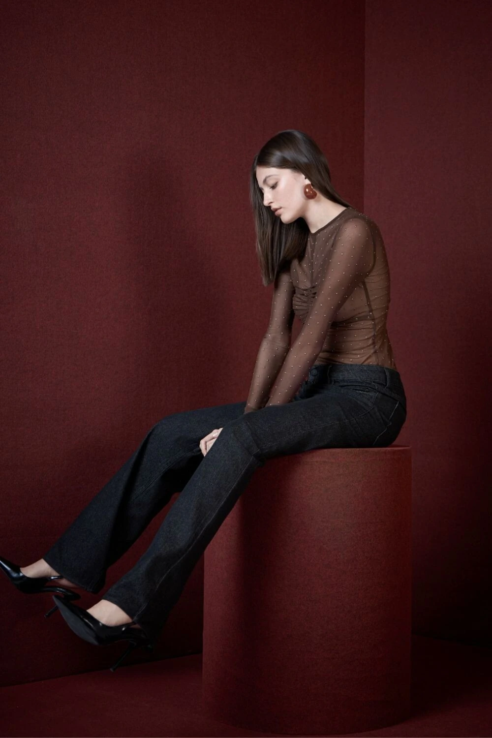 Blusa Manga Longa Tule Drapeado