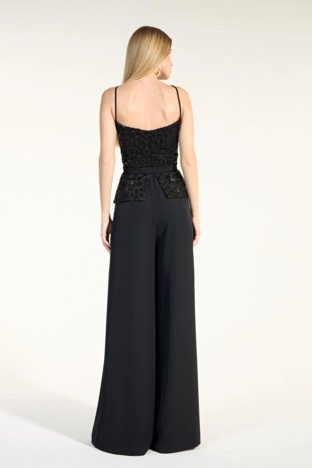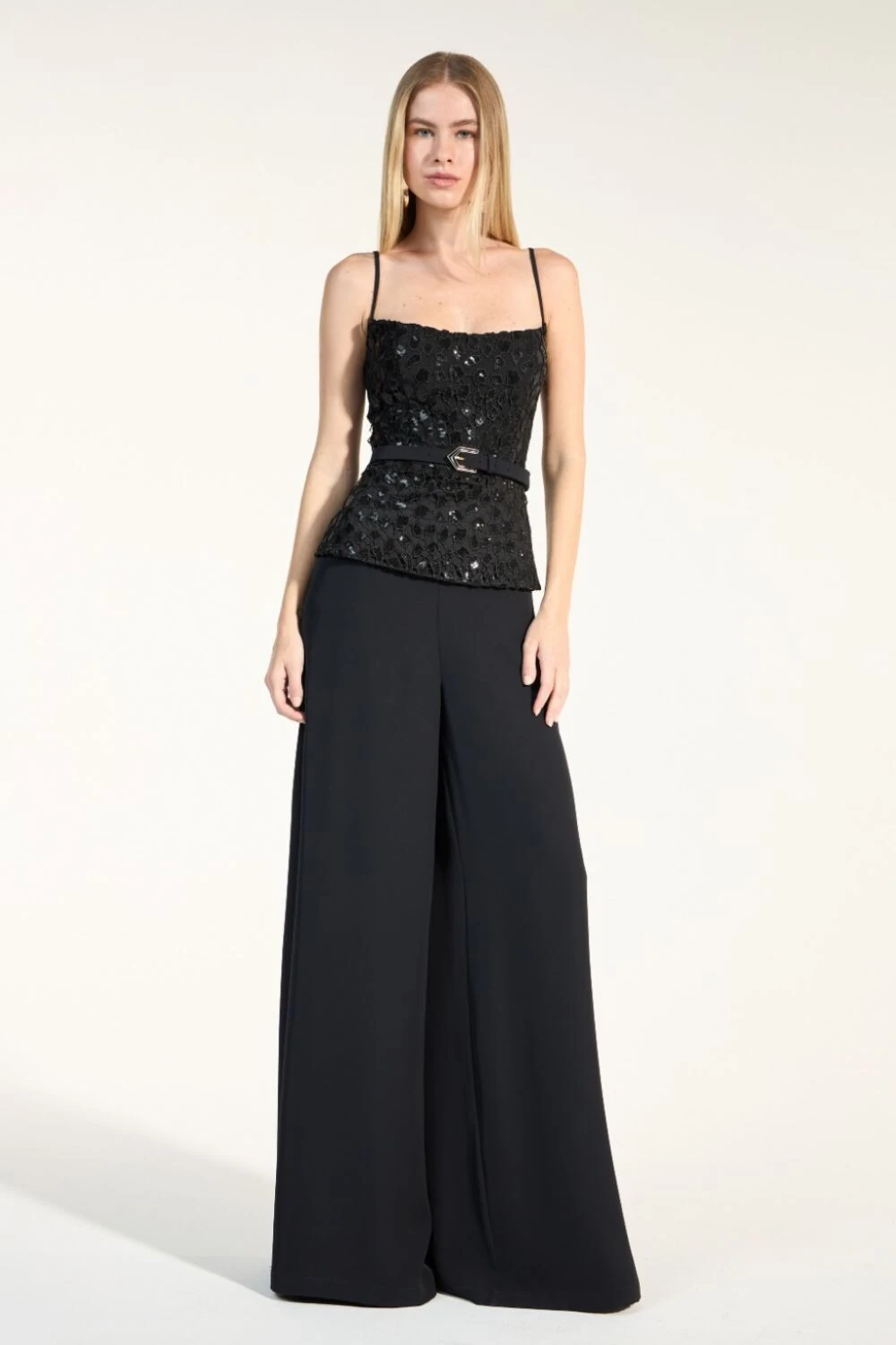Calça Rebeca Pregas Frontais Recorte Acetinado Lateral